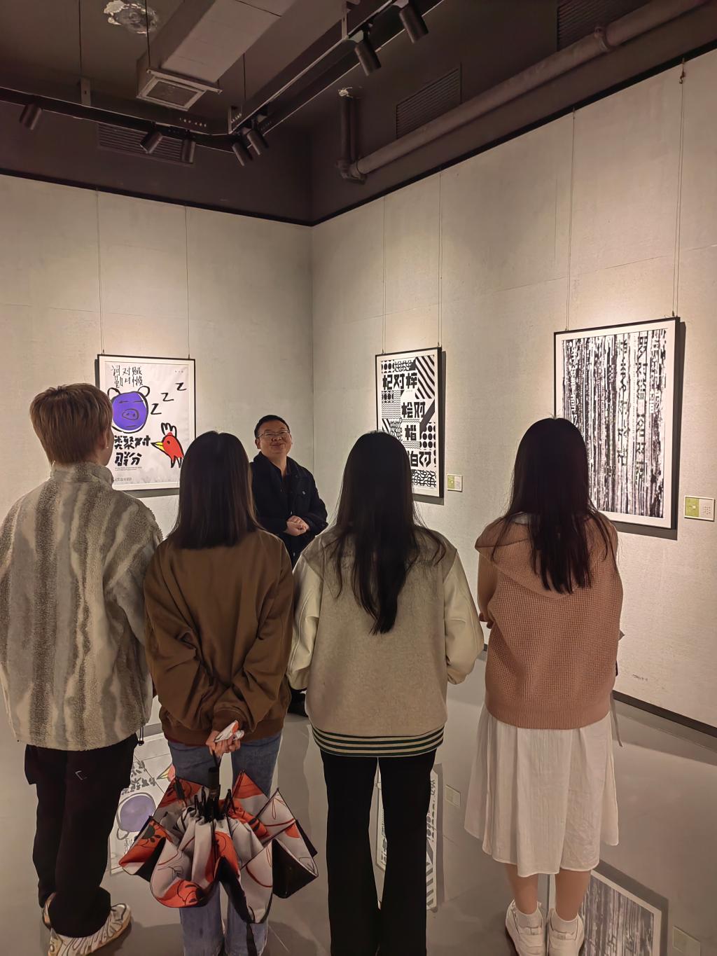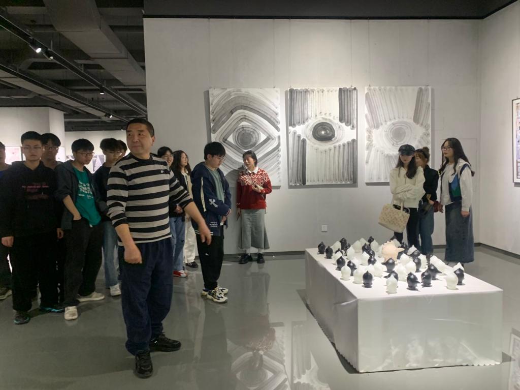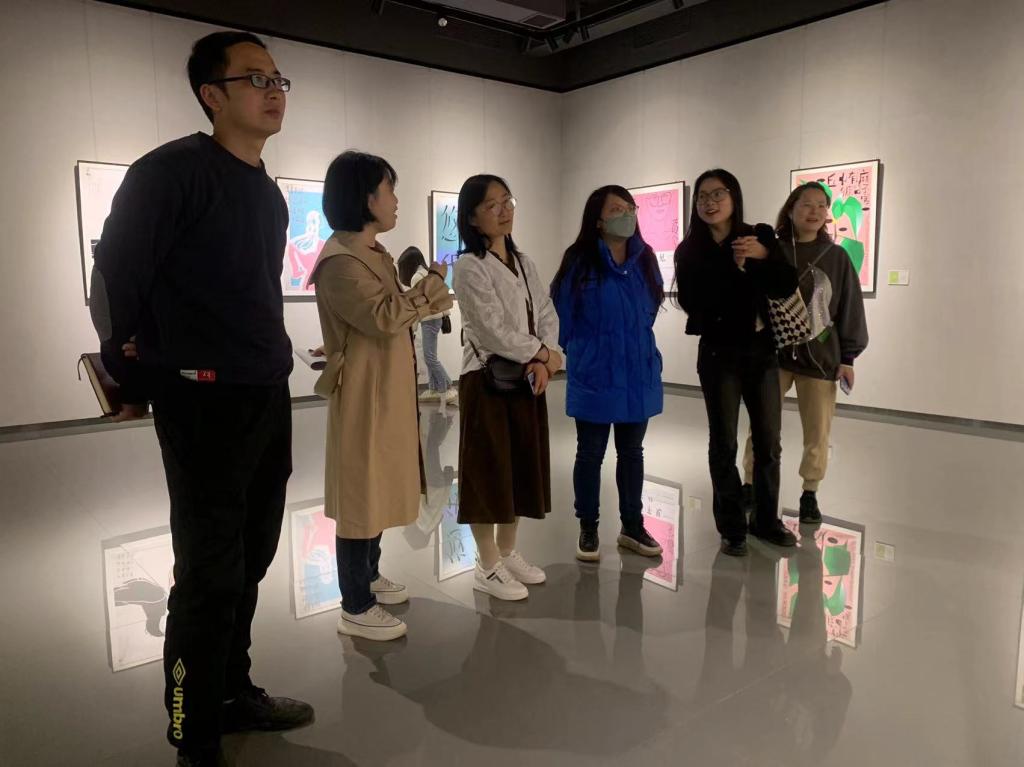 会中,教研室老师集体进入美术馆,在展览现场参观,并交流发言。彭琳老师、王少姝老师提到:将员工领进美术馆,在展览中将课本理论知识结合展览现场分析讲解,员工对知识点的理解和接受度更高。吴涛老师提出,将课堂搬进美术馆,更能激发员工的设计灵感,拓展员工设计视野,提升员工综合素养。