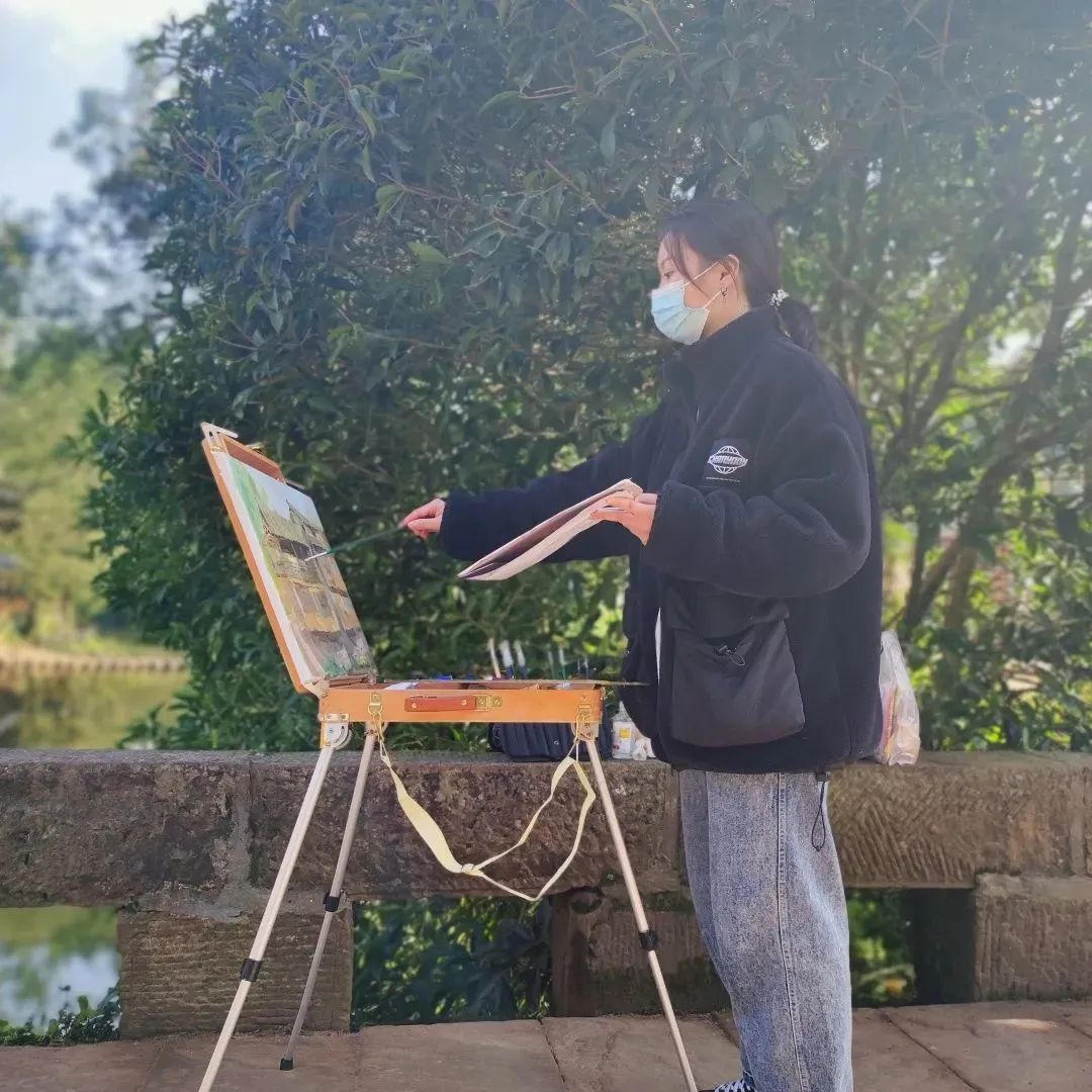 外出写生不仅可以提高个人的绘画能力,更能够在特定的环境里感受因不同的情绪而构成的某种审美契机,从而创作出抒发个人情感的作品。“二流的画家在画面上呈现出来的是绘画的技巧,一流的画家是在作品上表达自己的情感与想法。”所以写生的真正目的不是将现实生活中的风景“搬”到画布上,而是将在此景下产生的感情用自己独特的方式表达出来。因为美术馆承载量问题,所以只有部分优秀作品才能够在美术馆展出。这对同学们来说无疑是极大的激励,因为能被选中的作品不多,所以这也促使同学之间相互竞争,发现自己的优势与不足,在后期的学习中不断地改进和完善自己。
