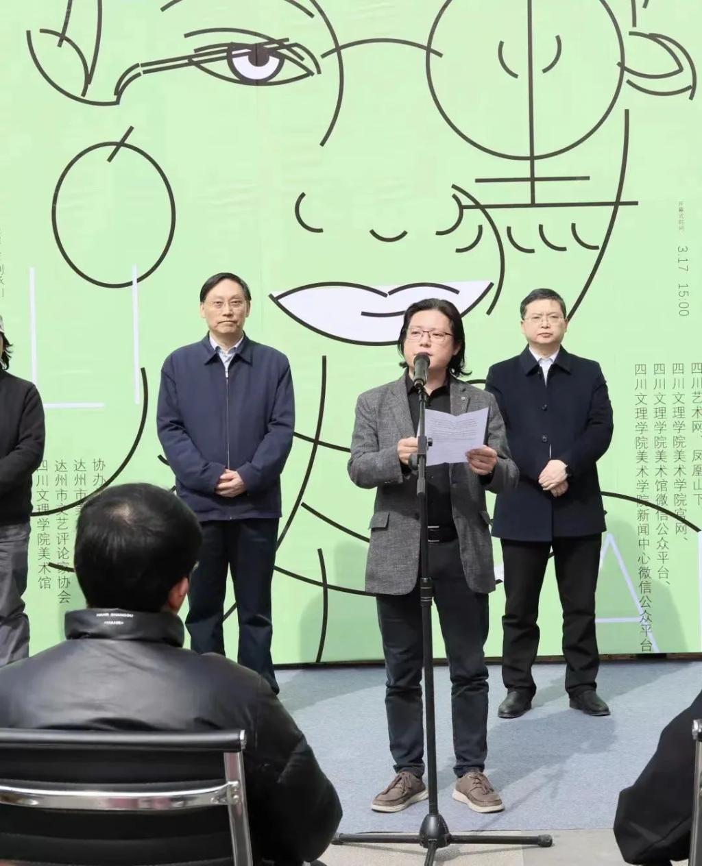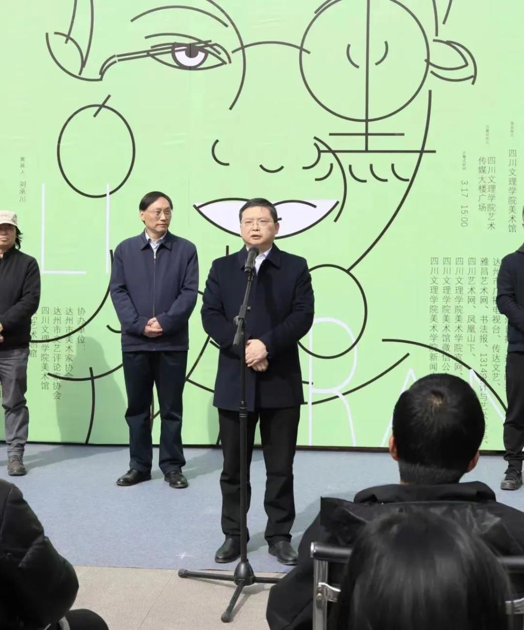 公司党委书记王成端、董事长侯忠明、达州市美术家协会主席龙飞、达州市广告协会会长熊毅、达州市第一中学党委书记向绍江、达州市515艺术创窟艺委会主任蒋晓树、员工工作办公室主任杨成林、团委书记成华军、公司党委书记罗江、经理刘承川以及易礼然员工的家人、朋友、老同学等出席了本次活动。美术馆馆长邓旭主持本活动开幕式。