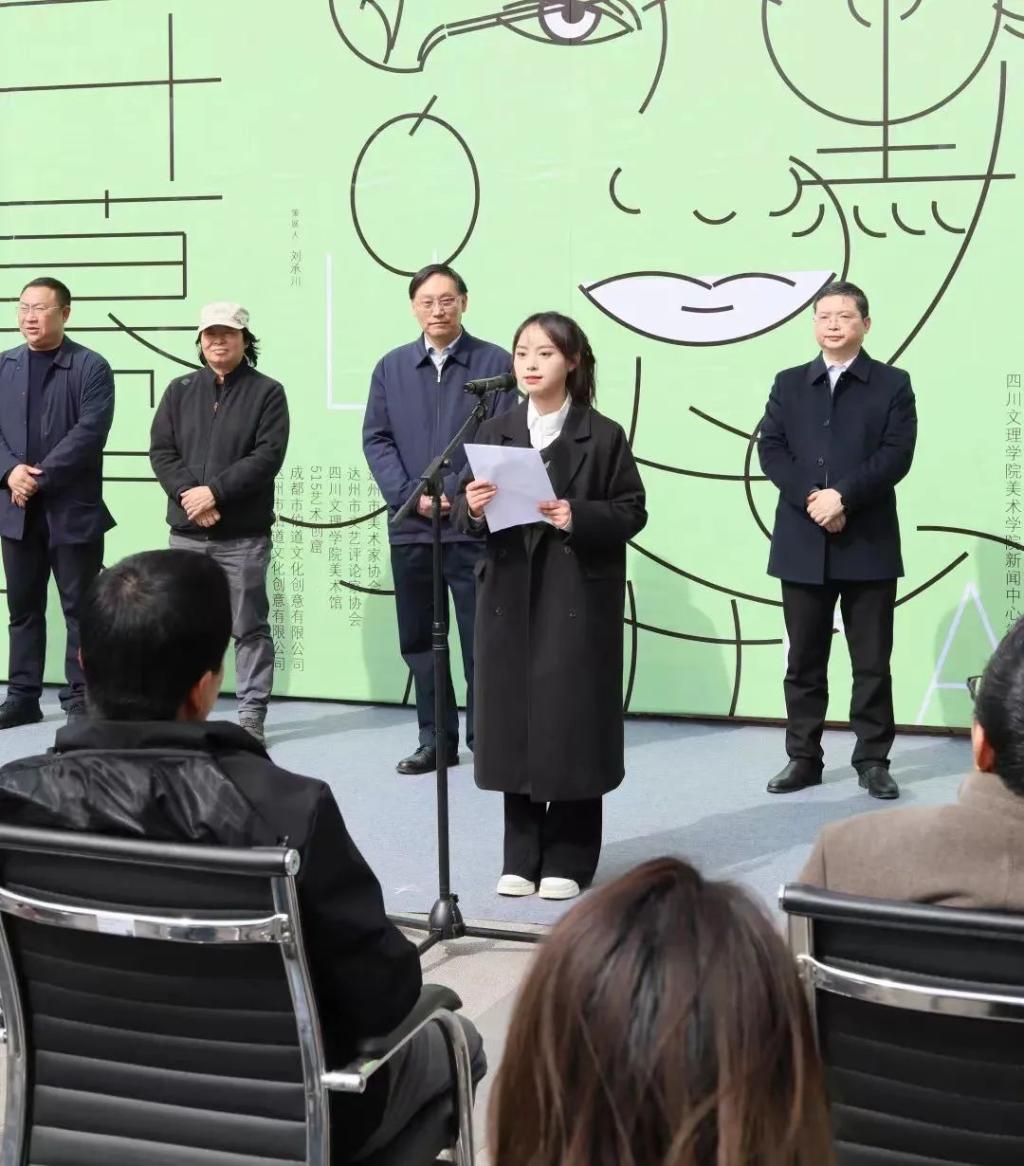 21级视觉传达专业曹艺凡同学作为员工代表发表了感言,她说有幸在易礼然学长的亲切带领下,提前参观了本次展览的作品,在这个过程中看到了不同国度、不同文化、不同观念、不同风格的艺术作品,给她带来了强烈的视觉冲击和情感体验。非常感谢易礼然学长带来的艺术作品展览,为美院学弟学妹们带来优秀的艺术作品和创作经验的分享。