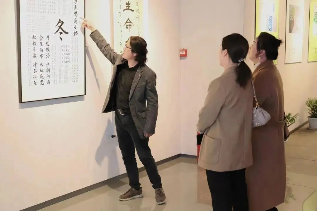 公司董事长侯忠明为本次展览致辞,他说这次展览的主题很应景,叫“桃李熏然”,一则时下正值桃红李白的初春时节,所以时令上很应景;二则在中华传统文化里,总以桃李比喻“学子”,这次展览的主角易礼然正是我们文理公司培养出来的“优秀桃李”之一,所以主题上也很应景。他说作为礼然的书法课程老师,虽然礼然同学没有成为职业的书法家,但“书法”却成为了他海报设计、字体设计最重要的灵感源泉。书法艺术、传统文化、古典文化都为易礼然的创作提供了最广阔的素材与灵感的宝库。他的这些以传统文化为创作母体的设计作品能在诸多国际大赛中获奖,也说明了我们中华民族的传统文化在世界文化之林中有着深厚的底蕴与巨大的魅力。