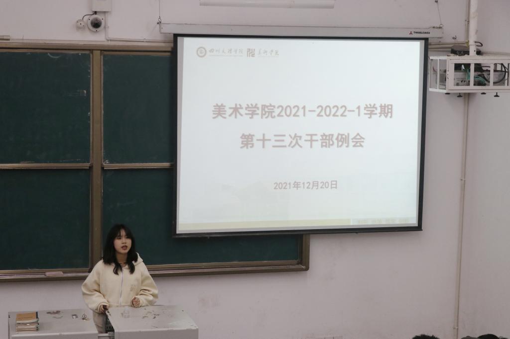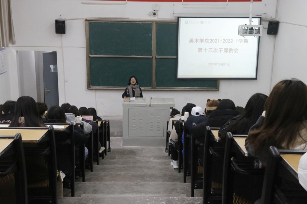 此次干部例会总结上一周工作中存在的问题,把临近期末相关工作做好,继续规范美院学子的行为习惯,养成良好的学习风气,从而更好的开展员工工作。