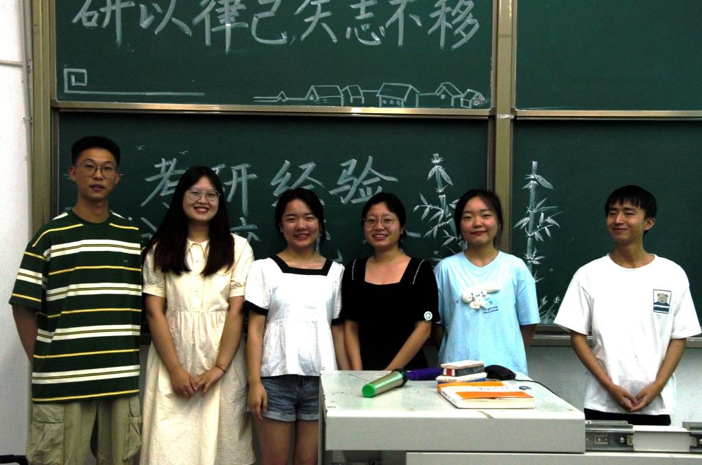 会上,程小玉等六位成功上岸的学长学姐分别介绍自己的初试成绩、复试线及报考公司的情况,向学弟学妹们分享自己的考研经验。唐海涛同学重点从考研英语的复习做了详细的讲解。对于考研心态,他则认为考研考的不仅是知识,更是一场时间和耐力上的博弈,保持平和的心态,不骄不躁,不过度紧张,不过度放松,找准一个平衡点,使自己进入最佳备考状态。谭慧芳同学侧重从考研调剂对同学们进行了分析和讲解,她用自身的经历向同学们说明了,选择了就不要放弃,所有的付出终究会有回报。