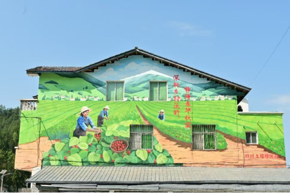 经过团队成员们的共同努力,一幅幅生动的画面在杉林湾村的墙壁上绽放。金黄的麦穗、硕果累累的枝头,这些不仅是艺术的展现,更是杉林湾村特色农产品丰饶的见证。这些画面不仅展现了乡村的美景,更蕴含了丰富的文化内涵和深厚的情感寄托。它们让原本平淡无奇的墙面变得多姿多彩,成为了展示美丽乡村特色的亮丽窗口。而对于“绘梦万源”墙绘专项实践团的成员们来说,这次社会实践活动不仅是一次艺术创作的历练,更是一次心灵的洗礼。他们在这里感受到了乡村的淳朴与热情,体验到了用艺术为乡村带来改变与希望的喜悦。这段经历让他们更加坚定了自己的艺术理想与社会责任感,激励他们在未来的学习与工作中继续探索与创新,用更多优秀的作品回馈社会、服务人民。