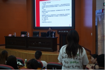 本次宣讲会以介绍重庆文理考研政策方面的视频拉开序幕。谢荣成一行从考试大纲、招生政策、招生人数等方面讲解与分析了考研就业现状及前景。