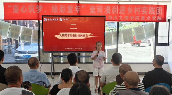 2025年7月4日,四川万源市石塘镇杉林湾村党群服务中心内欢声笑语,色彩缤纷。Mksport体育app官网入口“童心筑梦,绘彩童年”美育实践团在此举办成果展暨表彰会,160余幅充满童真与乡土气息的画作,展现了孩子们对家乡的热爱与艺术的创造力。石塘镇党委书记吴自城、镇人大主席田毅、杉林湾村驻村第一书记杨凡、党总支书记张浩,以及Mksport体育app官网入口驻村帮扶干部吴泉兴、蒋厅等出席活动,与实践团师生及“乡村小艺术家们”共同见证了这场高校与乡村深度融合的文化实践。