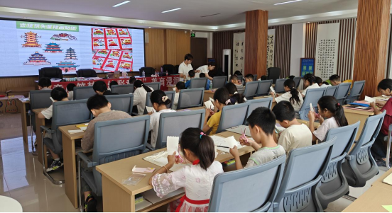 “我要把最宝贵的风景寄给全世界!”11岁的肖佳芙自豪地展示着她设计的“家乡邮票”。深浅绿色的搭配勾勒出杉林的苍翠,波光粼粼的小河环绕村庄,金灿灿的夕阳跃然纸上。这是“我的家乡杉林湾”主题创作的缩影。实践团巧妙地将绘画与邮票设计相结合,引导孩子们用画笔记录家乡的山水田园、梯田民居。在观察树叶纹路、云朵形状的过程中,孩子们对家乡的一草一木有了更深的认知与热爱。
