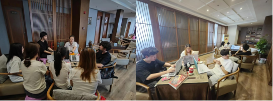 活动期间,团队聚焦“乡村赋能与艺术乡建”为切入点,与红军渡·西武当山景区负责人展开了深入座谈。会上针对景区文创原创不足,同质化突出等的问题,提出四项开发路径:融合广元非遗手工艺,强化本土特色;聚焦红色会议群体、研学员工等受众细分设计出差异化的产品;将“智勇坚定”的红军精神与AI数字技术深度结合;同时兼顾实用性与文化寓意,如借鉴北大“量人生的尺子”理念,让文创成为可触摸的精神载体。