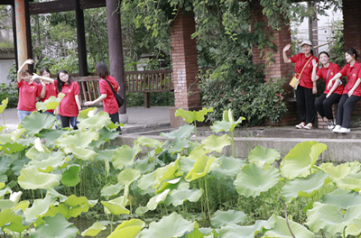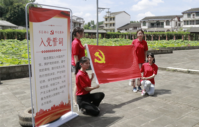 全体师生党员在党总支书记张吉应、经理刘承川的带领下,来到开江县新农村建设项目莲花世界,大家围坐一起,向当地村民了解新农村建设中的故事,在领略夏日荷塘美景的同时,感受党中央乡村振兴战略下新农村新面貌,感受党的惠农政策。随后,鲁仕贵老师向在场的师生党员分享了其在疫情期间参与疫情防控志愿服务情况。他谈到,作为一名党员,在国家危难之际,必须挺身而出,以自己的实际行动践行入党誓言。在场的师生党员也纷纷分享了自己家乡在党的领导下发生的一系列变化,畅谈如何发挥党员的先锋模范带头作用。接着,7名新发展党员面对鲜红的党旗进行入党宣誓,老党员重温入党誓词。公司总支委员及设计党支部书记、学工办主任向新党员赠予党徽。