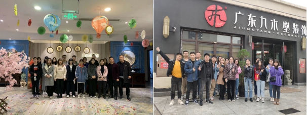 同时,双号组的同学也在叶美学姐的带领下,来到九木堂公司进行学习,首先在带领大家参观工作室和讲解工艺材料的施工工艺,让同学们了解了九木堂公司的大体发展及运营状态,明白了大概的施工流程之后,总监及设计师们进行了深入的交流学习,使同学们对室内设计有了更进一步的认识与理解。
