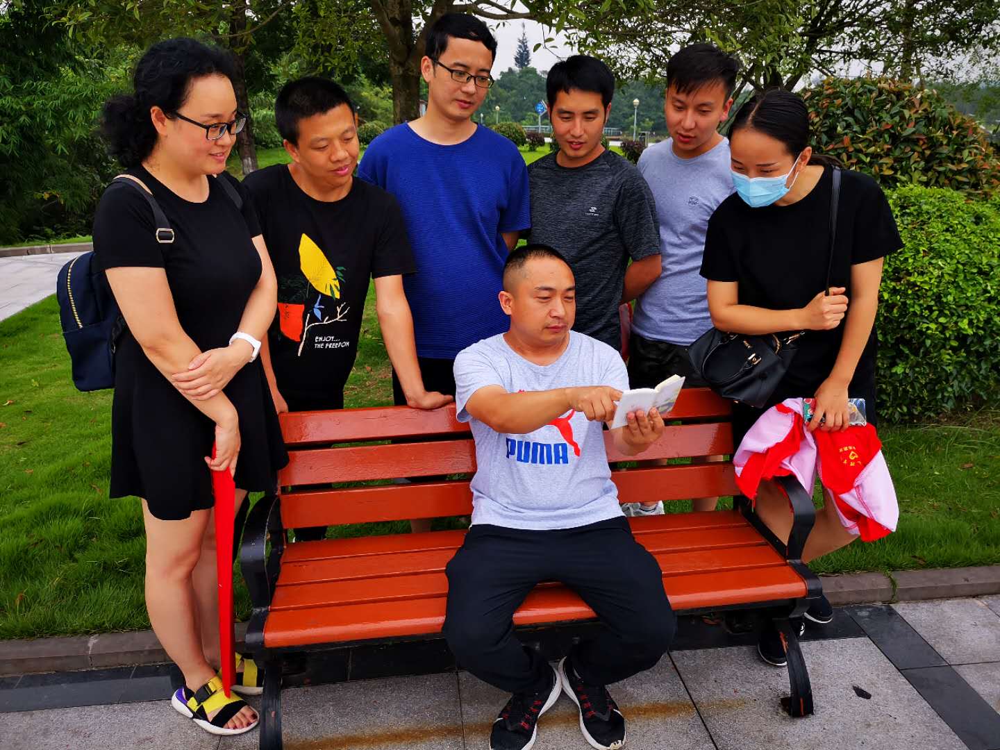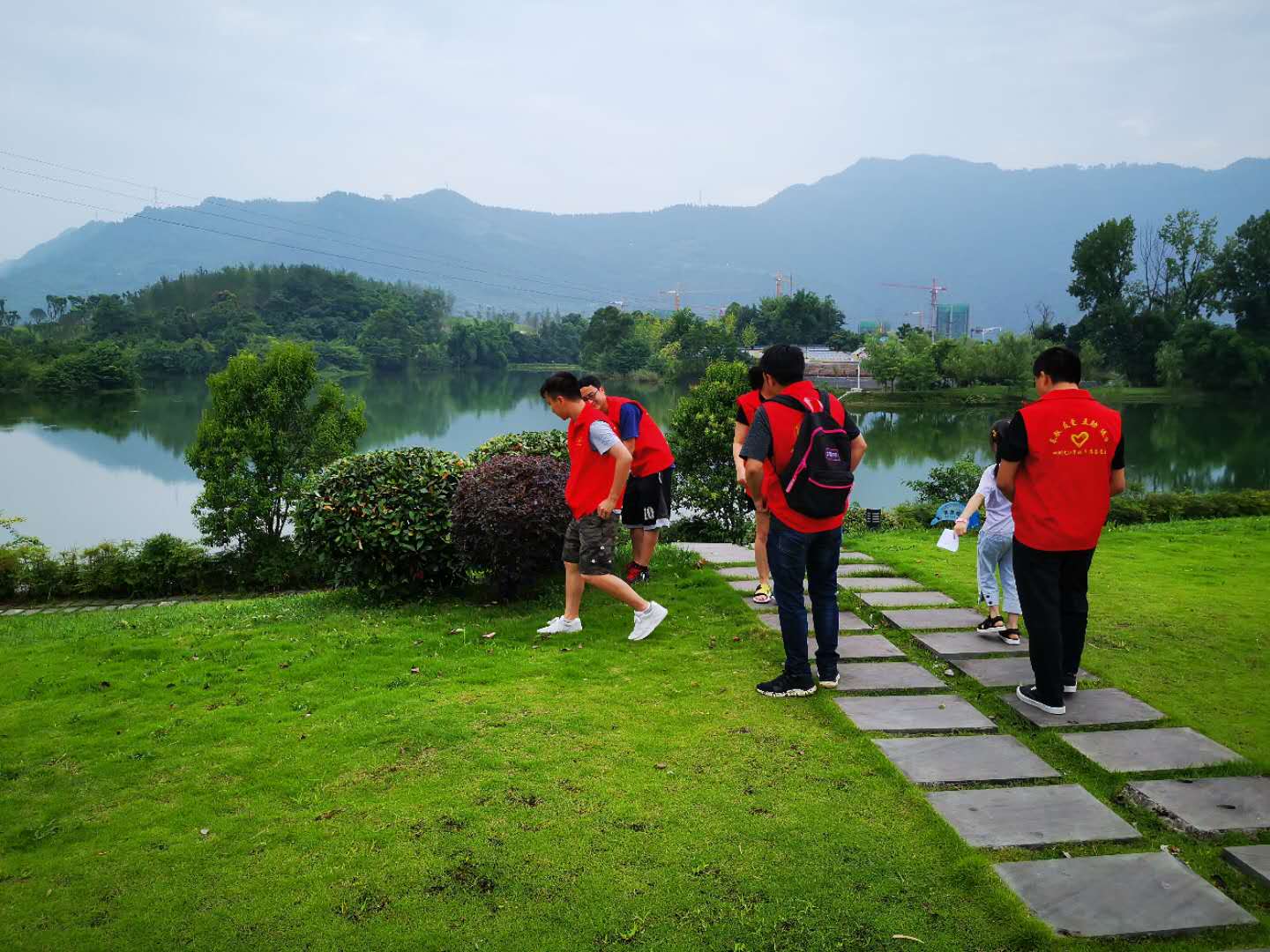 全体党员同志沿莲花湖周边进行了户外徒步,一边领略新新农村建设成果和沿途美景,一边捡拾沿途的垃圾参与四城同创爱护环境志愿活动。中途小憩时,鲁仕贵同志同在场的党员同志分享了他参与疫情防控志愿服务的情况。在场的党员同志也交流了自己家乡在乡村振兴战略下取得的建设成果,畅谈在脱贫攻坚战役中涌现的先锋模范党员事迹。