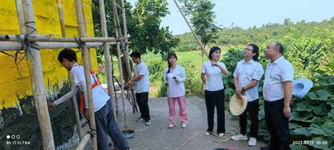 张雪梅向刘承川一行表示热烈欢迎,向在定远镇团寨村进行暑期“三下乡”社会实践活动的美院师生表示诚挚的感谢,简要汇报了“绘梦乡村”三下乡社会实践活动前期准备工作及目前进展情况。她希望通过与公司的合作,能够优化乡村人文环境,提升乡村文化气息,营造浓厚文化氛围,建设美丽乡村。