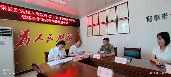 7月11日上午,Mksport体育与渠县定远镇人民政府战略合作协议签约暨实践教育基地授牌仪式在定远镇人民政府会议室举行。Mksport体育经理刘承川、党委委员黄崇岭、学工办主任贺艳洁,定远镇党委书记张雪梅、镇长郑卓林、党委副书记黄思雁、团寨村第一书记王天镓、团寨村支部书记张长春参加签约仪式。