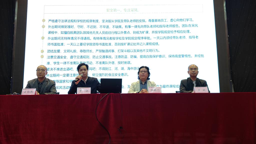 罗江就本次《艺术采风》实践教学的纪律和安全问题提出如下三点要求:第一,行动听指挥,全体员工要服从行程安排,遵守纪律,注重安全,出行前备齐生活与学习用品;第二,学习按计划,采风是实践课程,所有程序要按严格教学计划,采风作业应准时、高质量完成;第三,言行展风貌,外出期间注意言行举止,尊重当地风俗习惯,若有特殊诉求通过合理渠道倾述,不得通过网络媒体发表不当言论,塑造文理学子的优秀精神面貌。