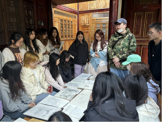 此次艺术采风主要前往大理、丽江,对周城、喜洲古镇、大理海西生态长廊、双廊古镇、大理古城、石宝山景区、沙溪古镇、东巴秘境、国家方志馆南方丝绸之路分馆、束河古镇、丽江古城、玉湖村等地进行艺术考察。同学们从各个专业的视角感受自然风光,体验扎染工艺,观察当地建筑特点和服装风格,了解当地民俗及历史。带队老师在此过程中对同学们的画作进行讲解、指导,并全程关心关注同学们的安全问题,及时回应同学们的疑问与需求。