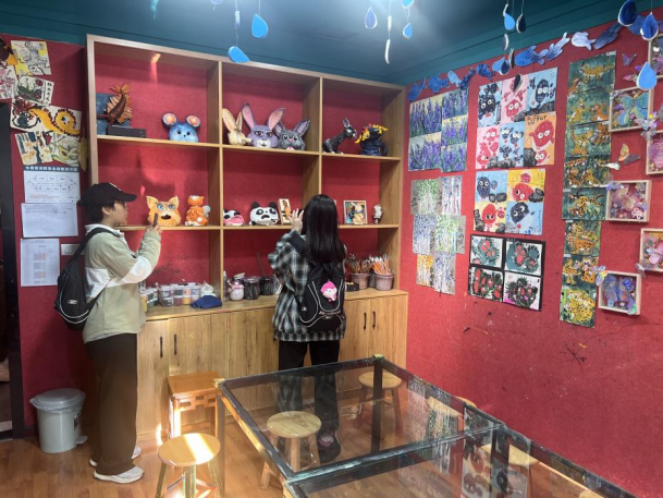 同学们观看一、二年级员工美术作品展