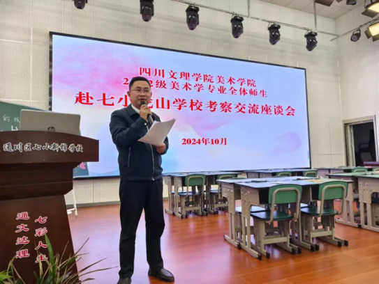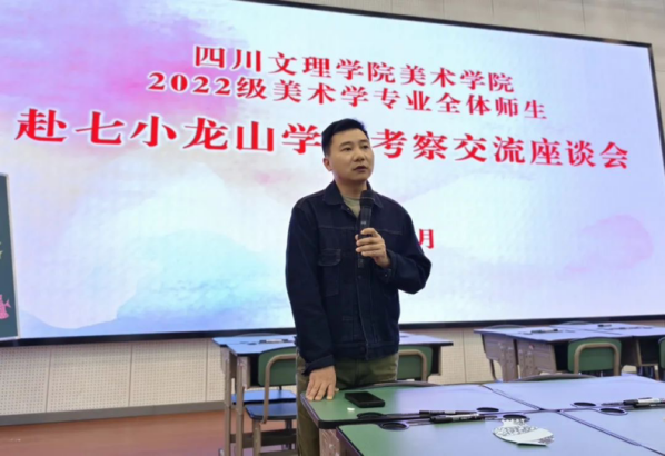 2024年10月21日上午,2022级美术学专业1——6班共172人,在6位指导老师的带领下一起来到了通川区七小龙山公司进行了为期半天的专业考察。在龙山公司领导和老师们的热情接待下,师生一行参观了公司校园文化建设和一、二年级员工书画作品展示。随后在多功能展示厅进行了考察交流座谈会。