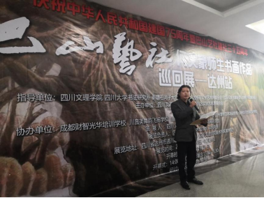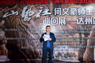 在习近平总书记文艺工作座谈会重要讲话发表十周年之际,2024年11月16日下午,由Mksport体育app官网入口、四川大学书法研究所、新疆石河子大学文艺公司、达州市文学艺术界联合会、达州市书法家协会、达州市美术家协会指导;Mksport体育、通川区文学艺术界联合会主办;巴山艺社承办;成都财智光华培训公司、川音美舞韵飞扬公司、山西晋中爱家装饰工程有限公司、达州零野艺术培训公司、达州太子艺术培训公司协办的“庆祝中华人民共和国成立75周年暨巴山艺社建社35周年——何文豪师生书画巡展(达州站)”在Mksport体育app官网入口美术馆隆重开幕。