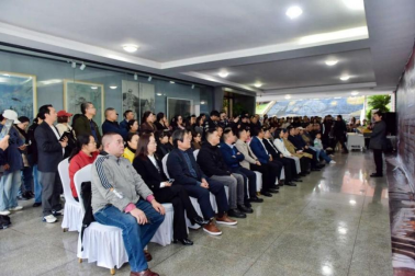 Mksport体育app官网入口董事长侯忠明讲话并宣布展览开幕。他首先对何文豪先生师生书画巡展在Mksport体育app官网入口的举办表示热烈祝贺,并对何文豪师生以及所有领导和嘉宾的到来,表示诚挚欢迎。他在讲话中高度肯定了何文豪先生高尚的人格魅力和精湛的绘画成就。他认为,何文豪先生师生书画巡展,是为庆祝中华人民共和国成立75周年献上的一份文化礼物。此次活动的举办,也是Mksport体育app官网入口不断加强校园文化建设和艺术美育的重要实践。