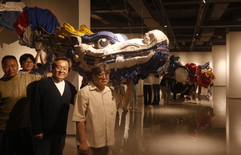 刘承川代表主办方向所有支持此次展览并参与共创的师生及家长,尤其是艺术家张有魁先生表示感谢。他指出,《望子成龙》是艺术家张有魁先生发起的全国性公共艺术共创计划,以校服为媒介,将“望子成龙”这一命题转化为一条由无数双手共同编织的“龙”。这条龙,既是传统文化的象征,也是当代教育现状的镜像。