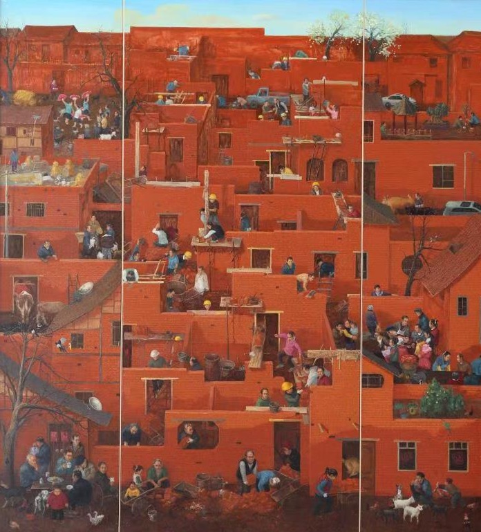 二等奖:吴仕华《家园.叙事之二》(油画)、刘渐郡 《暖冬的集市》(油画)