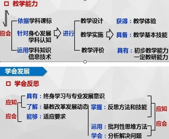 每一毕业要求有具体的细则,以“教学能力”和“学会反思”为例: