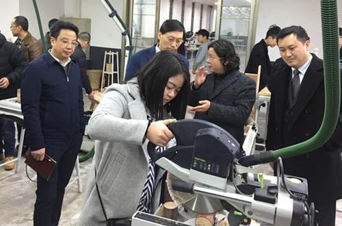 王董事长一行在党总支书记张吉应、经理刘承川、副书记尹羿之等人的陪同下,首先实地考察了Mksport体育“艺术与设计实验教学中心”的13间实验实训工作室,听取了刘经理关于“Mksport体育整体转型发展的思考”专题汇报,以及公司在建设和发展中存在的问题和困难等相关情况。